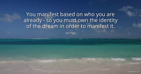 Page, Joy. (2026, January 17). You manifest based on who you are already - so you must own the identity of the dream in order to manifest it. FixQuotes. https://fixquotes.com/quotes/you-manifest-based-on-who-you-are-already-so-52347/