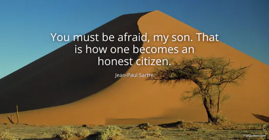 Sartre, Jean-Paul. (2026, January 17). You must be afraid, my son. That is how one becomes an honest citizen. FixQuotes. https://fixquotes.com/quotes/you-must-be-afraid-my-son-that-is-how-one-becomes-35277/