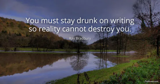 Bradbury, Ray. (2026, January 15). You must stay drunk on writing so reality cannot destroy you. FixQuotes. https://fixquotes.com/quotes/you-must-stay-drunk-on-writing-so-reality-cannot-153074/