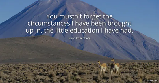 Rosenberg, Isaac. (2026, January 15). You mustn't forget the circumstances I have been brought up in, the little education I have had. FixQuotes. https://fixquotes.com/quotes/you-mustnt-forget-the-circumstances-i-have-been-167606/