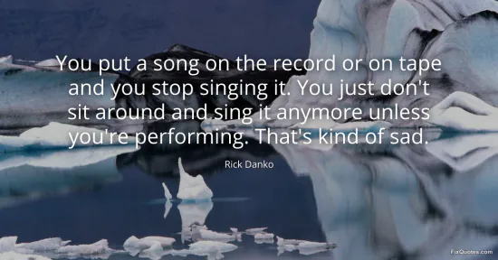 Danko, Rick. "You put a song on the record or on tape and you stop singing it. You just don't sit around and sing it anymore unless you're performing. That's kind of sad." FixQuotes. January 16, 2026. https://fixquotes.com/quotes/you-put-a-song-on-the-record-or-on-tape-and-you-101639/.