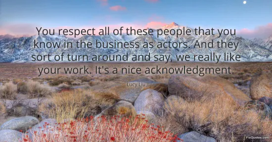 Liu, Lucy. "You respect all of these people that you know in the business as actors. And they sort of turn around and say, we really like your work. It's a nice acknowledgment." FixQuotes. January 15, 2026. https://fixquotes.com/quotes/you-respect-all-of-these-people-that-you-know-in-169020/.