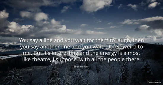 Fenn, Sherilyn. (2026, January 16). You say a line and you wait for them to laugh, then you say another line and you wait... It felt weird to me. But it's interesting and the energy is almost like theatre, I suppose, with all the people there. FixQuotes. https://fixquotes.com/quotes/you-say-a-line-and-you-wait-for-them-to-laugh-98971/