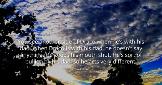 Felton, Tom. "You see another side of Draco when he's with his dad. When Draco is with his dad, he doesn't say anything. He keeps his mouth shut. He's sort of bullied by his dad, so he acts very different." FixQuotes. January 18, 2026. https://fixquotes.com/quotes/you-see-another-side-of-draco-when-hes-with-his-18135/.