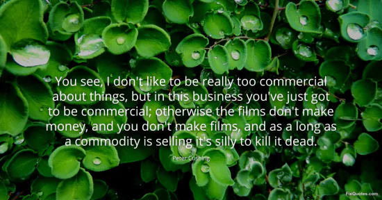 Cushing, Peter. "You see, I don't like to be really too commercial about things, but in this business you've just got to be commercial; otherwise the films don't make money, and you don't make films, and as a long as a commodity is selling it's silly to kill it dead." FixQuotes. February 18, 2026. https://fixquotes.com/quotes/you-see-i-dont-like-to-be-really-too-commercial-86852/.
