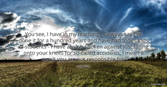 "You see, I have in my teaching - I always say I've done it for a hundred years and have had thousands of students - I have always spoken against just falling onto your knees for so-called accidents, I mean a result you are not responsible for." FixQuotes, 15 Jan. 2026, https://fixquotes.com/quotes/you-see-i-have-in-my-teaching-i-always-say-ive-164057/. Accessed 10 Feb. 2026.