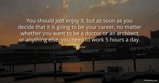 Forget, Guy. "You should just enjoy it, but as soon as you decide that it is going to be your career, no matter whether you want to be a doctor or an architect or anything else, you need to work 5 hours a day." FixQuotes. January 16, 2026. https://fixquotes.com/quotes/you-should-just-enjoy-it-but-as-soon-as-you-111947/.