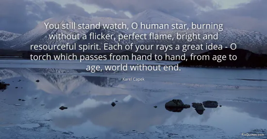 Capek, Karel. (2026, January 17). You still stand watch, O human star, burning without a flicker, perfect flame, bright and resourceful spirit. Each of your rays a great idea - O torch which passes from hand to hand, from age to age, world without end. FixQuotes. https://fixquotes.com/quotes/you-still-stand-watch-o-human-star-burning-69036/