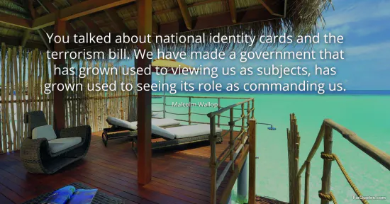 Wallop, Malcolm. (2026, January 16). You talked about national identity cards and the terrorism bill. We have made a government that has grown used to viewing us as subjects, has grown used to seeing its role as commanding us. FixQuotes. https://fixquotes.com/quotes/you-talked-about-national-identity-cards-and-the-114275/