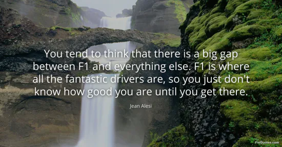 Alesi, Jean. "You tend to think that there is a big gap between F1 and everything else. F1 is where all the fantastic drivers are, so you just don't know how good you are until you get there." FixQuotes. January 18, 2026. https://fixquotes.com/quotes/you-tend-to-think-that-there-is-a-big-gap-between-13420/.