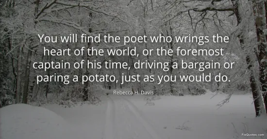 Davis, Rebecca H. "You will find the poet who wrings the heart of the world, or the foremost captain of his time, driving a bargain or paring a potato, just as you would do." FixQuotes. January 17, 2026. https://fixquotes.com/quotes/you-will-find-the-poet-who-wrings-the-heart-of-79459/.