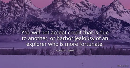 Lowell, Abbott L. "You will not accept credit that is due to another, or harbor jealousy of an explorer who is more fortunate." FixQuotes. January 17, 2026. https://fixquotes.com/quotes/you-will-not-accept-credit-that-is-due-to-another-61445/.