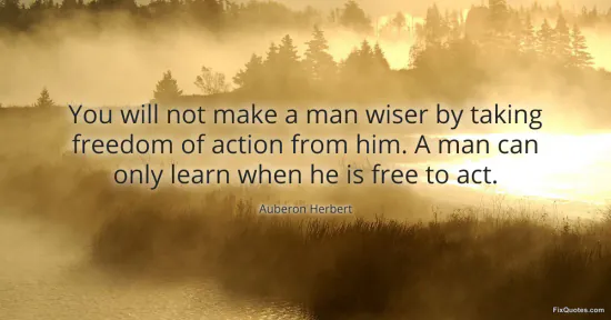 "You will not make a man wiser by taking freedom of action from him. A man can only learn when he is free to act"