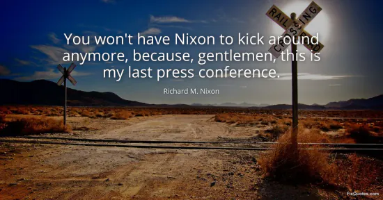 Nixon, Richard M. (2026, January 13). You won't have Nixon to kick around anymore, because, gentlemen, this is my last press conference. FixQuotes. https://fixquotes.com/quotes/you-wont-have-nixon-to-kick-around-anymore-17156/