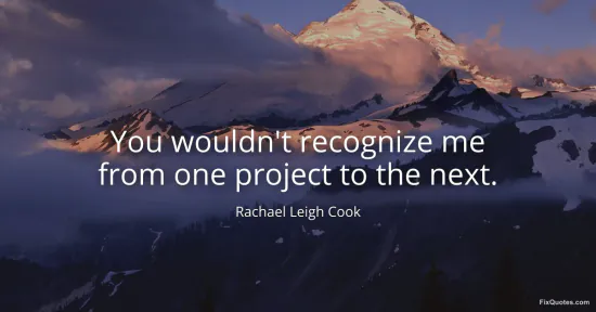 Cook, Rachael Leigh. "You wouldn't recognize me from one project to the next." FixQuotes. Accessed February 3, 2026. https://fixquotes.com/quotes/you-wouldnt-recognize-me-from-one-project-to-the-89252/.