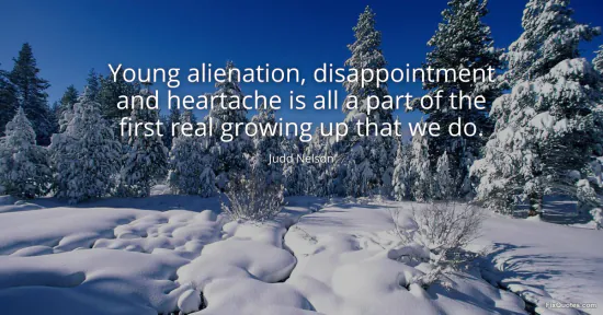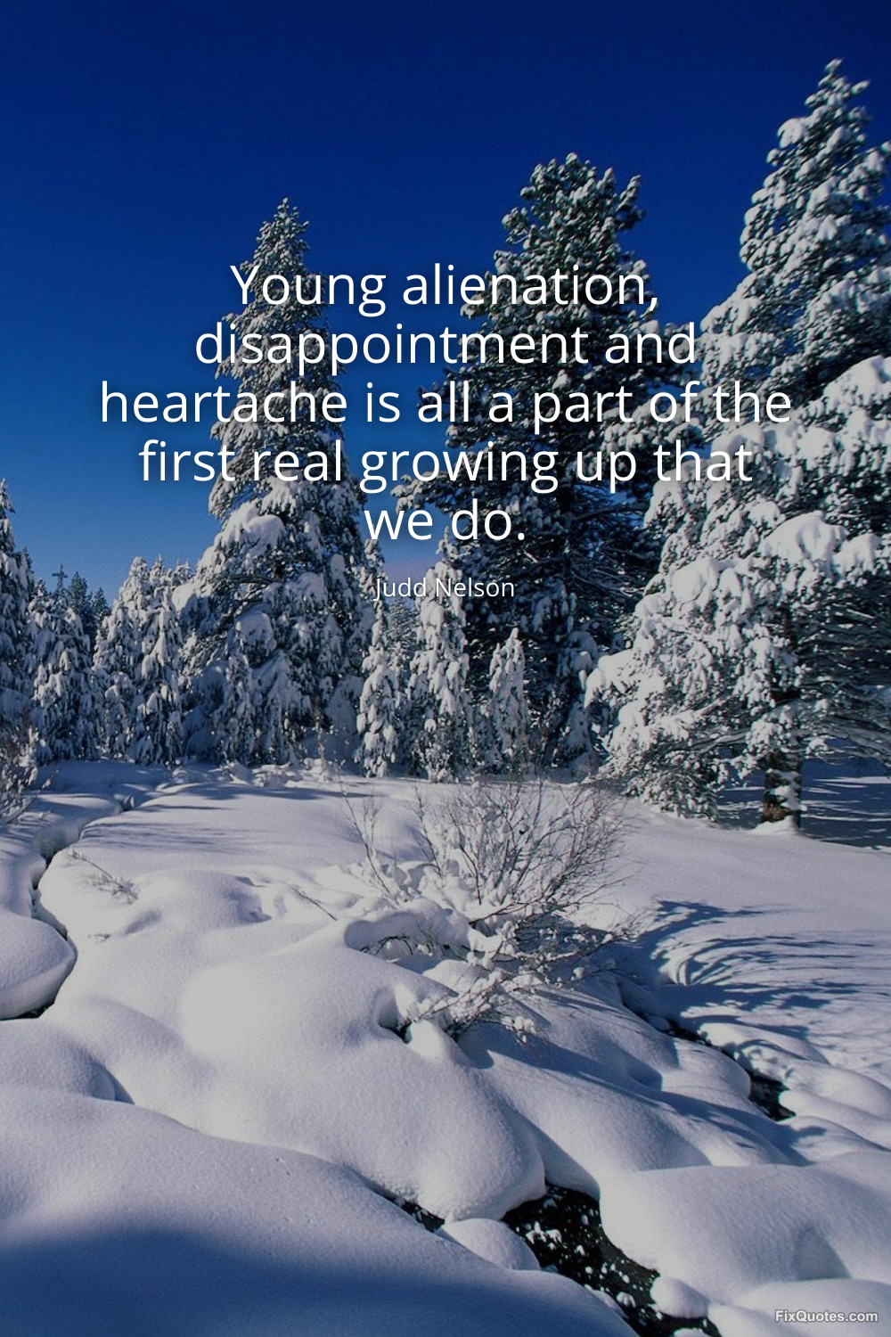 Nelson, Judd. (2026, January 15). Young alienation, disappointment and heartache is all a part of the first real growing up that we do. FixQuotes. https://fixquotes.com/quotes/young-alienation-disappointment-and-heartache-is-165288/