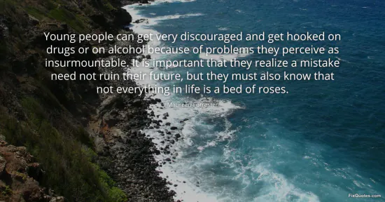 "Young people can get very discouraged and get hooked on drugs or on alcohol because of problems they perceive as insurmountable. It is important that they realize a mistake need not ruin their future, but they must also know that not everything in life is a bed of roses." FixQuotes, 15 Jan. 2026, https://fixquotes.com/quotes/young-people-can-get-very-discouraged-and-get-159192/. Accessed 24 Feb. 2026.