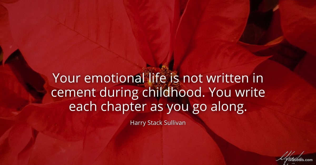 Sullivan, Harry Stack. (2026, January 16). Your emotional life is not written in cement during childhood. You write each chapter as you go along. FixQuotes. https://fixquotes.com/quotes/your-emotional-life-is-not-written-in-cement-112563/