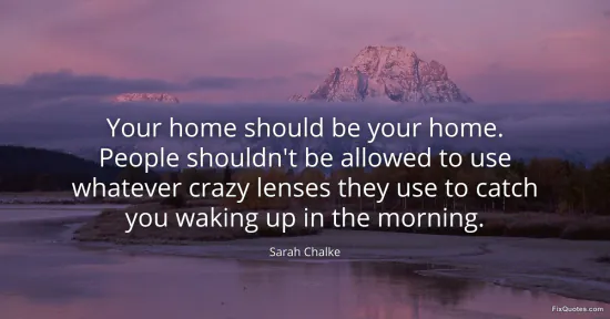 Chalke, Sarah. (2026, January 15). Your home should be your home. People shouldn't be allowed to use whatever crazy lenses they use to catch you waking up in the morning. FixQuotes. https://fixquotes.com/quotes/your-home-should-be-your-home-people-shouldnt-be-166633/