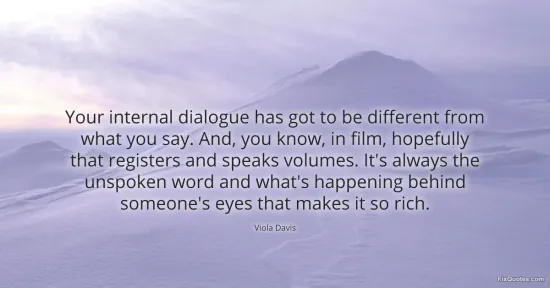 Davis, Viola. "Your internal dialogue has got to be different from what you say. And, you know, in film, hopefully that registers and speaks volumes. It's always the unspoken word and what's happening behind someone's eyes that makes it so rich." FixQuotes. January 18, 2026. https://fixquotes.com/quotes/your-internal-dialogue-has-got-to-be-different-13531/.