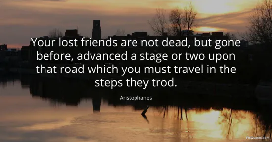 Aristophanes. (2026, January 16). Your lost friends are not dead, but gone before, advanced a stage or two upon that road which you must travel in the steps they trod. FixQuotes. https://fixquotes.com/quotes/your-lost-friends-are-not-dead-but-gone-before-108898/