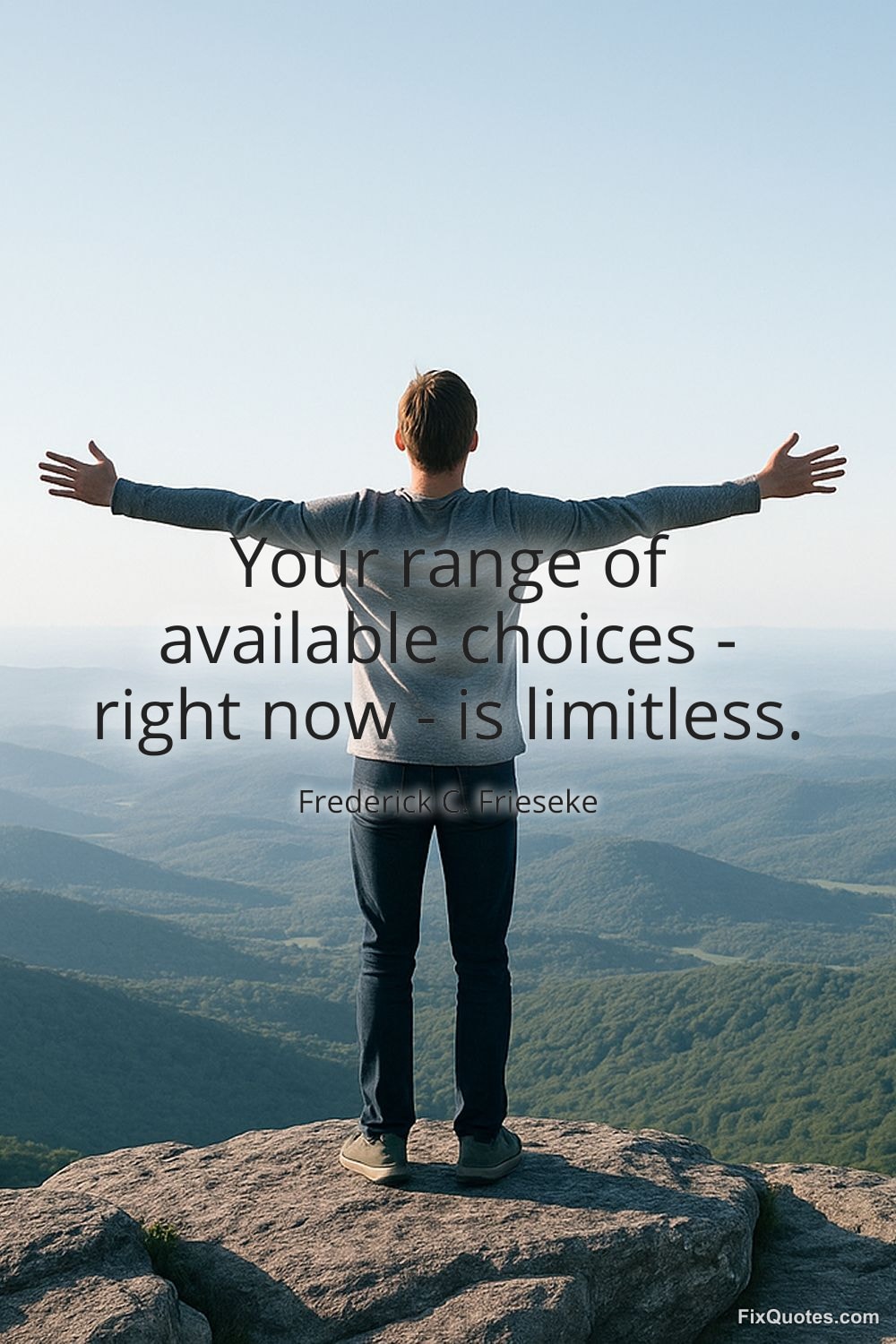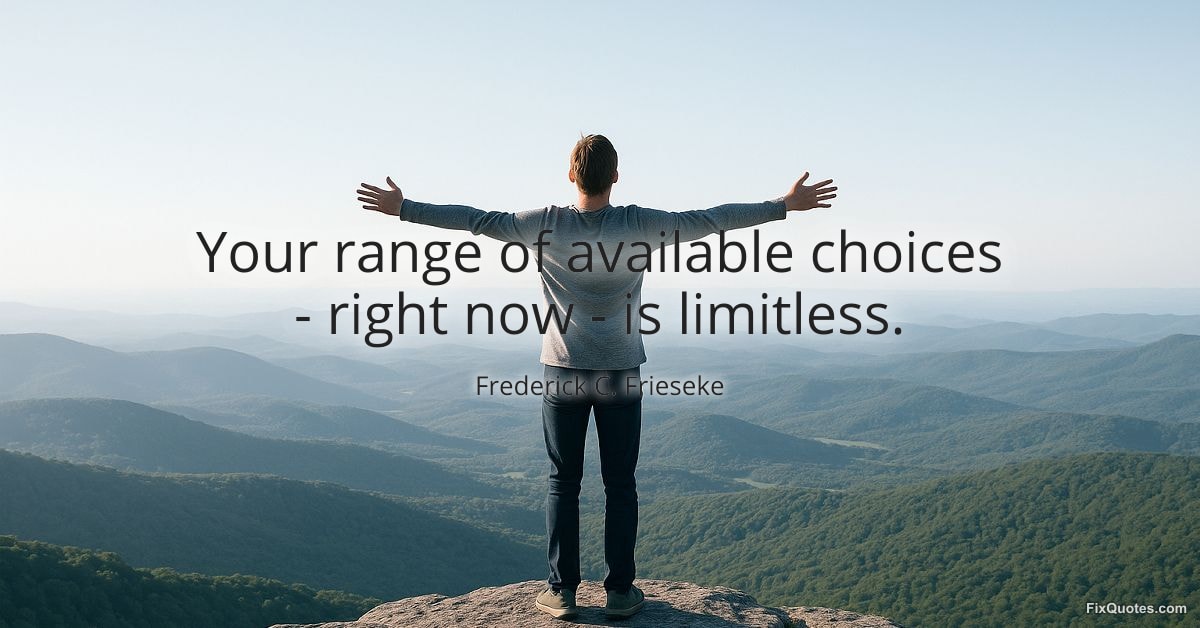 Frieseke, Frederick C. "Your range of available choices - right now - is limitless." FixQuotes. January 11, 2026. https://fixquotes.com/quotes/your-range-of-available-choices-right-now-is-135567/.