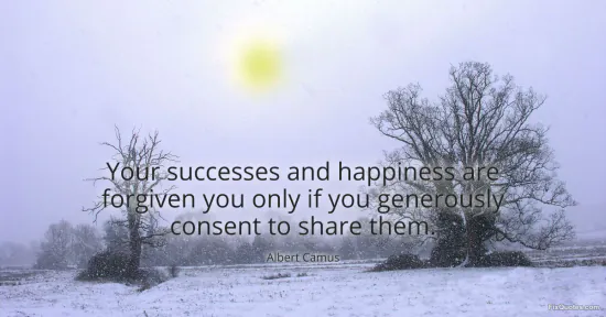 Camus, Albert. "Your successes and happiness are forgiven you only if you generously consent to share them." FixQuotes. January 17, 2026. https://fixquotes.com/quotes/your-successes-and-happiness-are-forgiven-you-34863/.
