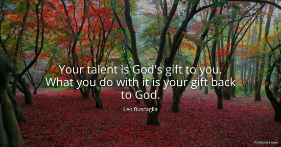 Buscaglia, Leo. (2026, February 12). Your talent is God's gift to you. What you do with it is your gift back to God. FixQuotes. https://fixquotes.com/quotes/your-talent-is-gods-gift-to-you-what-you-do-with-15833/