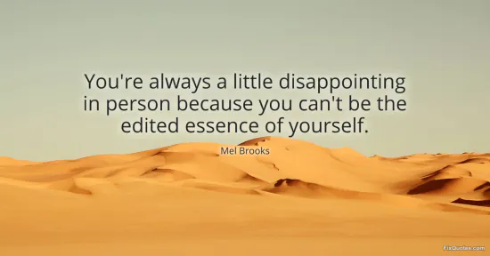 Brooks, Mel. (2026, January 18). You're always a little disappointing in person because you can't be the edited essence of yourself. FixQuotes. https://fixquotes.com/quotes/youre-always-a-little-disappointing-in-person-17123/