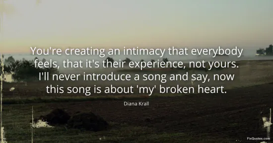 Krall, Diana. (2026, January 16). You're creating an intimacy that everybody feels, that it's their experience, not yours. I'll never introduce a song and say, now this song is about 'my' broken heart. FixQuotes. https://fixquotes.com/quotes/youre-creating-an-intimacy-that-everybody-feels-131751/
