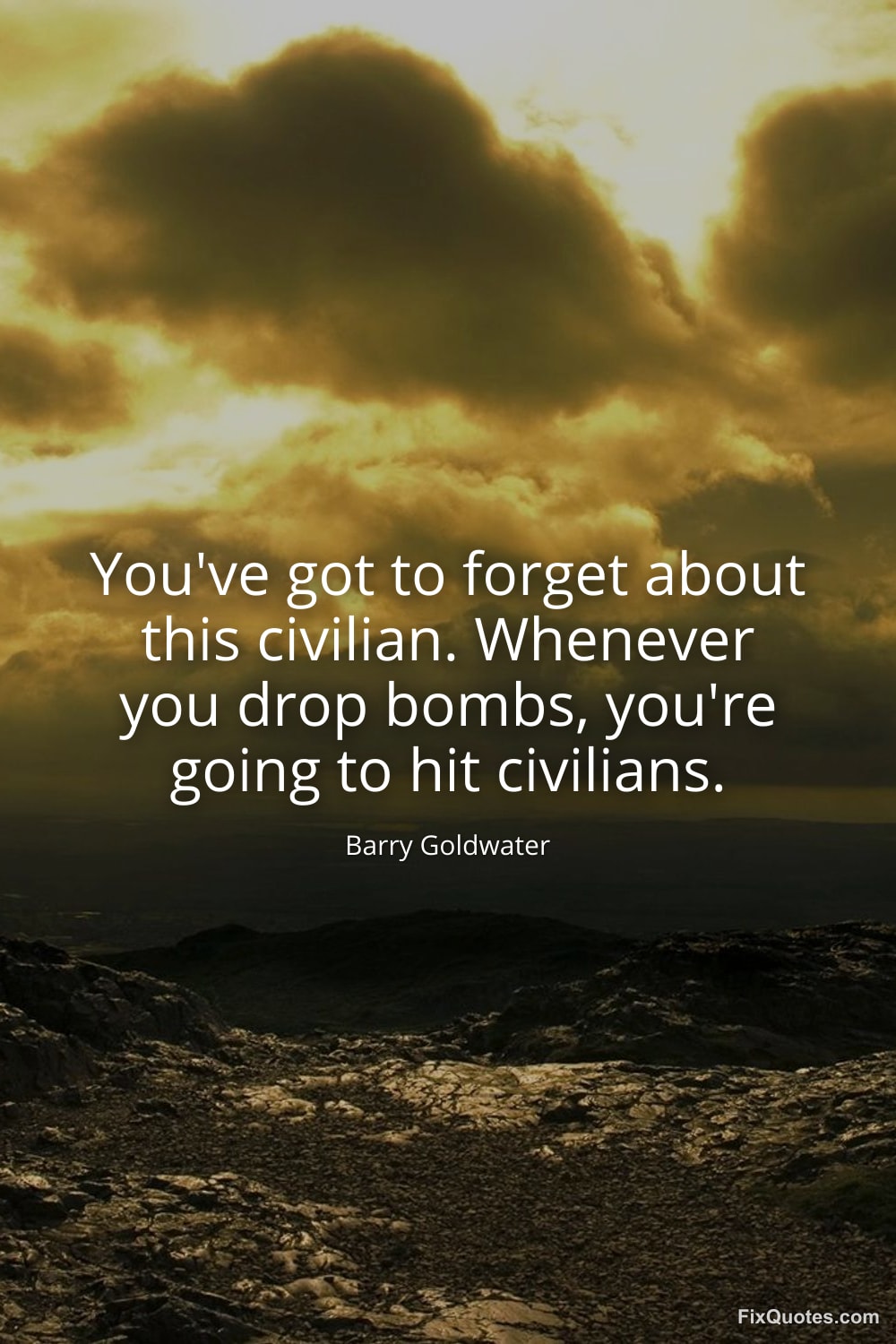 Goldwater, Barry. (2026, January 17). You've got to forget about this civilian. Whenever you drop bombs, you're going to hit civilians. FixQuotes. https://fixquotes.com/quotes/youve-got-to-forget-about-this-civilian-whenever-62578/