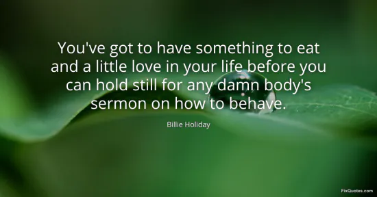 Holiday, Billie. (2026, January 16). You've got to have something to eat and a little love in your life before you can hold still for any damn body's sermon on how to behave. FixQuotes. https://fixquotes.com/quotes/youve-got-to-have-something-to-eat-and-a-little-139498/