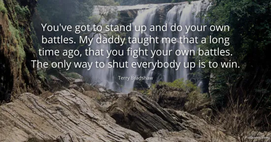 Bradshaw, Terry. "You've got to stand up and do your own battles. My daddy taught me that a long time ago, that you fight your own battles. The only way to shut everybody up is to win." FixQuotes. January 16, 2026. https://fixquotes.com/quotes/youve-got-to-stand-up-and-do-your-own-battles-my-90413/.