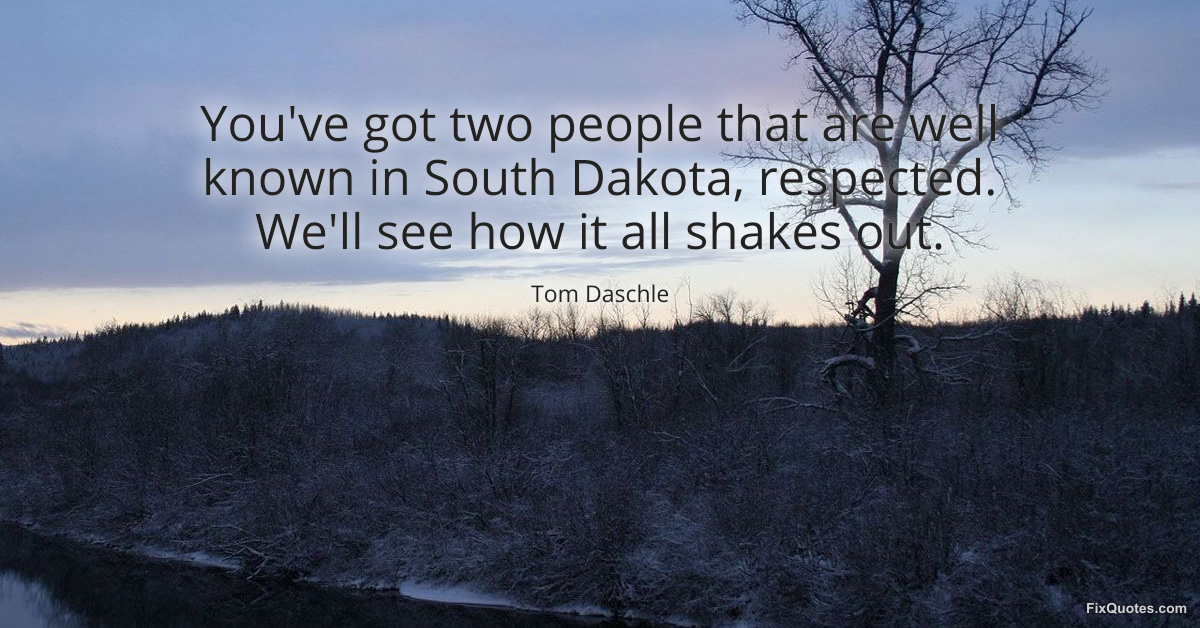 Daschle, Tom. (2026, January 16). You've got two people that are well known in South Dakota, respected. We'll see how it all shakes out. FixQuotes. https://fixquotes.com/quotes/youve-got-two-people-that-are-well-known-in-south-105499/
