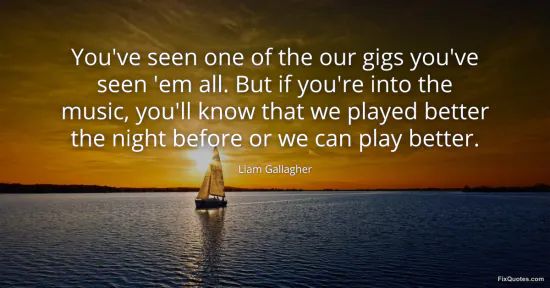 Gallagher, Liam. (2026, January 16). You've seen one of the our gigs you've seen 'em all. But if you're into the music, you'll know that we played better the night before or we can play better. FixQuotes. https://fixquotes.com/quotes/youve-seen-one-of-the-our-gigs-youve-seen-em-all-103798/