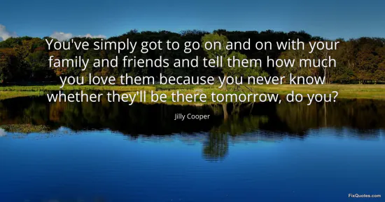 Cooper, Jilly. "You've simply got to go on and on with your family and friends and tell them how much you love them because you never know whether they'll be there tomorrow, do you?" FixQuotes. January 17, 2026. https://fixquotes.com/quotes/youve-simply-got-to-go-on-and-on-with-your-family-28392/.