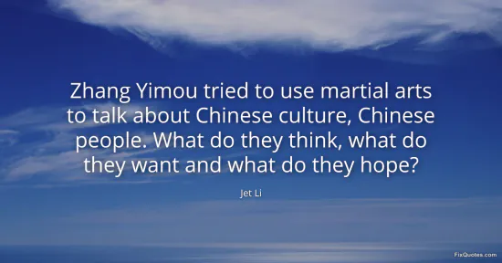 Li, Jet. "Zhang Yimou tried to use martial arts to talk about Chinese culture, Chinese people. What do they think, what do they want and what do they hope?" FixQuotes. February 19, 2026. https://fixquotes.com/quotes/zhang-yimou-tried-to-use-martial-arts-to-talk-56908/.