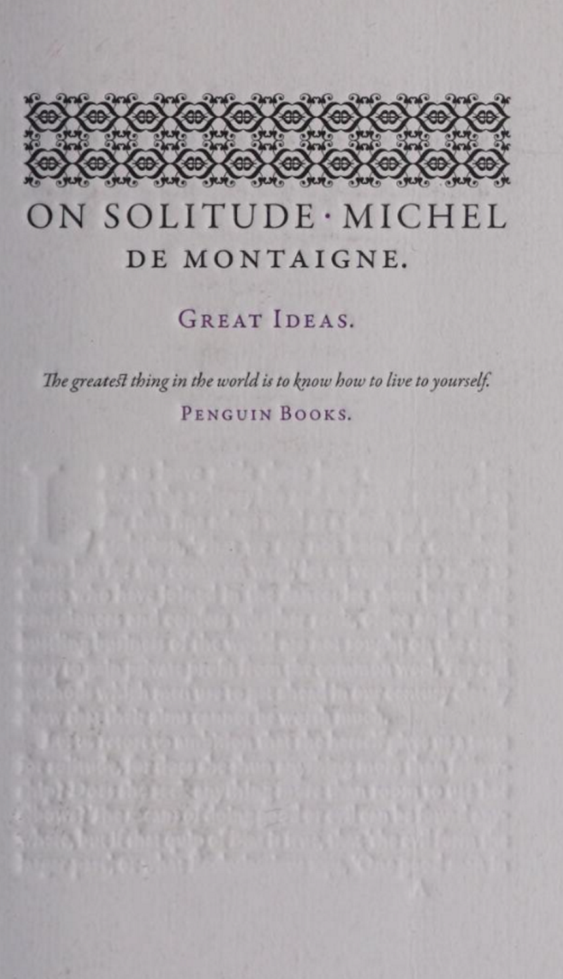 On Solitude is an essay that explores Montaigne's thoughts on the importance of solitude for achieving personal happiness and intellectual development, and the role of privacy in achieving a more intimate relationship with oneself.